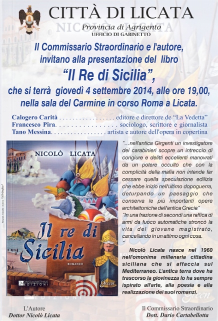 Interverranno: il professor Calogero Carita, Editore e Direttore de "La Vedetta", il professor Francesco Pira, sociologo, giornalista e docente di comunicazione dell'Università di Messina e l'artista Tano Messina, autore dell'opera in copertina. Concluderà l’autore dottor Nicolò Licata.